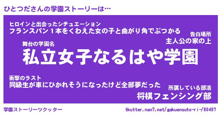 | 告白場所 先生の家の上 …「ふぃぎゅこ」 | 2月17日 06:24 |