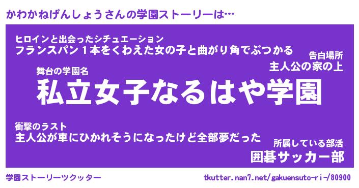 | 伝説のあだ名 | 『封印されしスナイパーかわかねげんしょう』 |