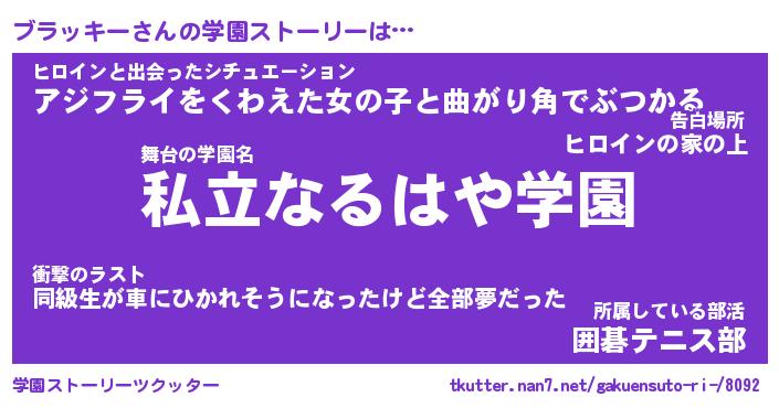 | 男性向けラノベタイトル風あだ名 | 『ブラッキーの憂鬱』 |