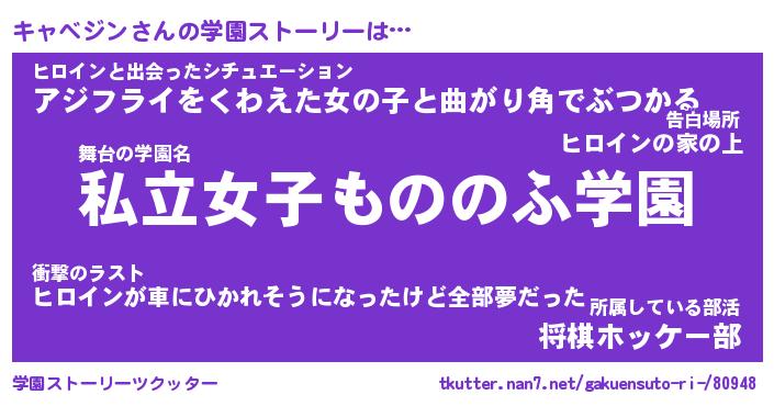 | ファンタジー風あだ名 | 『キャフェル』『エターナルキャベジンー』 |