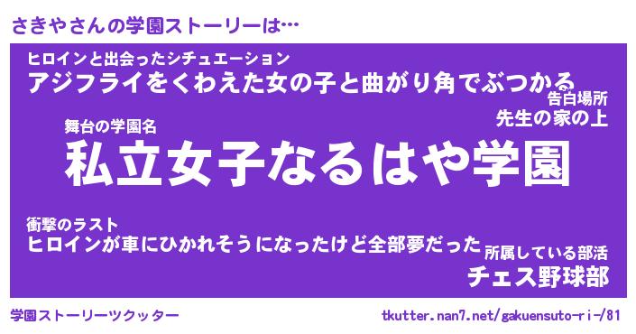 | ファンタジー風あだ名 | 『サキフェル』『エターナルサキヤー』 |
