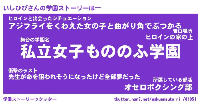 | ヒーロー風カッコイイあだ名 | 『スーパーイシヒビ』『天弓騎士イシ』 |