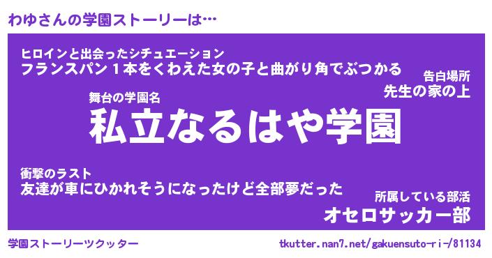 | 女子向けラノベタイトル風あだ名 | 『(仮)わゆのやんごとなき事情』 |