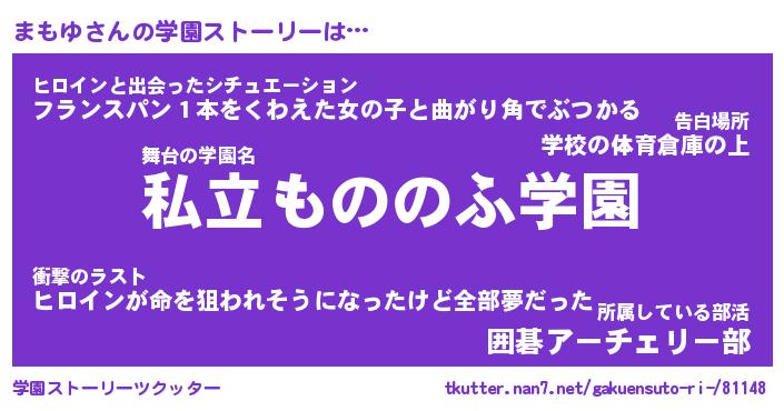 | 女子向けラノベタイトル風あだ名 | 『(仮)まもゆのやんごとなき事情』 |