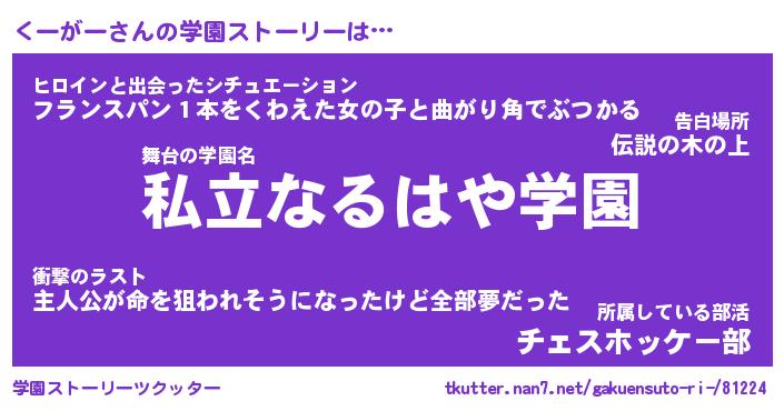 | 男性向けラノベタイトル風あだ名 | 『くーがーの憂鬱』 |