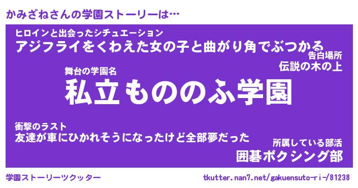| 男性向けラノベタイトル風あだ名 | 『かみざねの憂鬱』 |