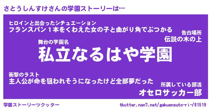 | 肩書あだ名 | 『さとうしんすけ御曹司』 |