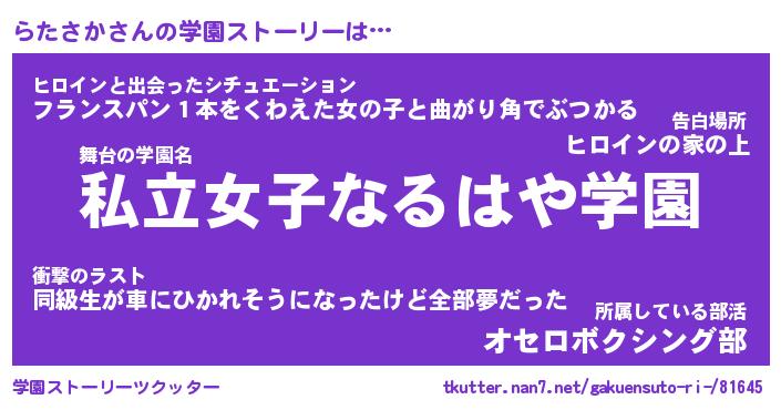 | 告白場所 先生の家の上 …「ふぃぎゅこ」 | 2月17日 06:24 |