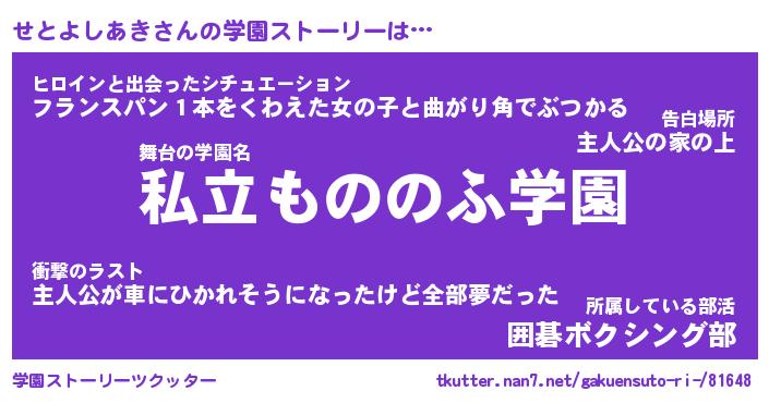| ファンタジー風あだ名 | 『セトフェル』『ファントムセトス』 |