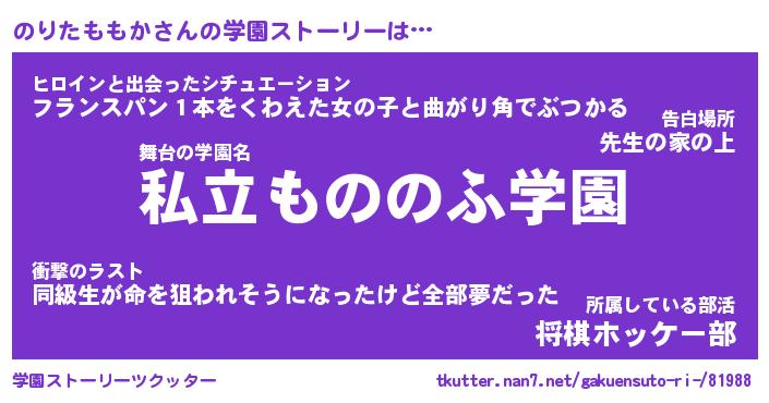 | 男性向けラノベタイトル風あだ名 | 『のりたももかの憂鬱』 |