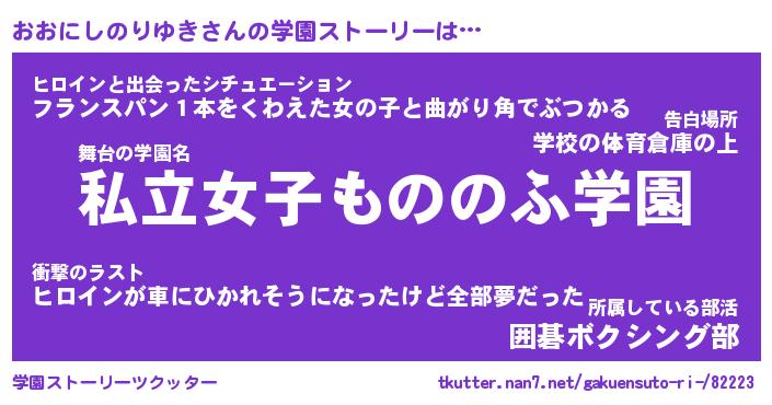 | 女子向けラノベタイトル風あだ名 | 『おおにしのりゆき姫と円卓の騎士』 |