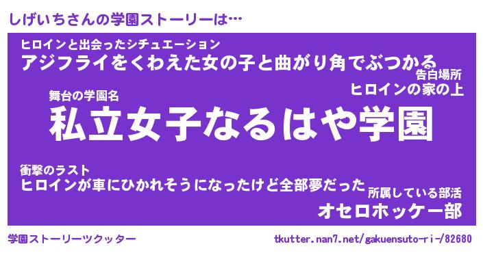 | 男性向けラノベタイトル風あだ名 | 『シゲイチアートオンライン』 |