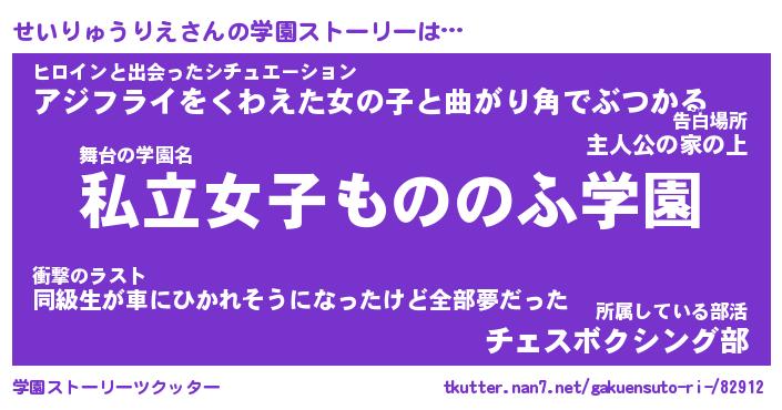 | 恥ずかしいあだ名 | 『プリティーせいりゅうりえ』『せいちん』 |