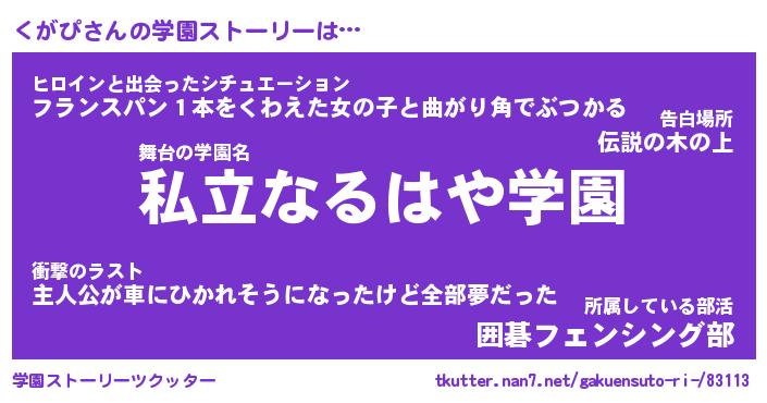 | 男性向けラノベタイトル風あだ名 | 『くがぴの憂鬱』 |