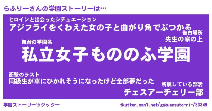 | 告白場所 先生の家の上 …「ふぃぎゅこ」 | 2月17日 06:24 |