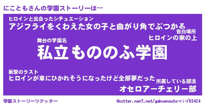 | 男性向けラノベタイトル風あだ名 | 『にこともの憂鬱』 |