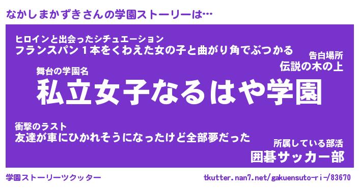 | 女子向けラノベタイトル風あだ名 | 『なかしまかずき姫と円卓の騎士』 |