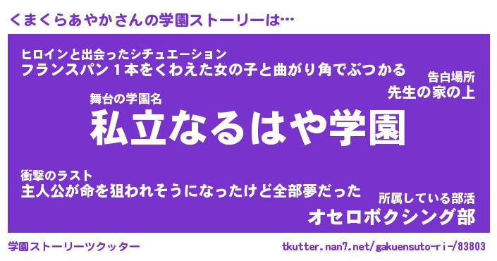 | 肩書あだ名 | 『くまくらあやか御曹司』 |