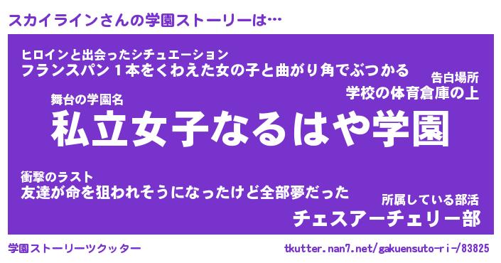 | 女子向けラノベタイトル風あだ名 | 『スカイライン姫と円卓の騎士』 |