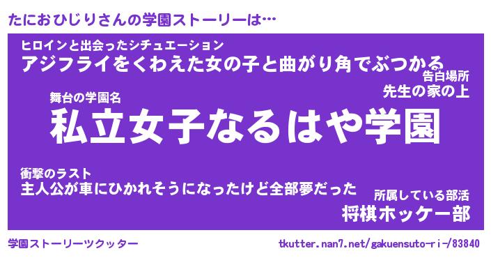 | 女子向けラノベタイトル風あだ名 | 『たにおひじり姫と円卓の騎士』 |