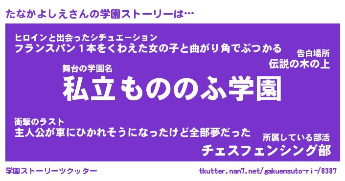 | 女子向けラノベタイトル風あだ名 | 『(仮)たなかよしえのやんごとなき事情』 |
