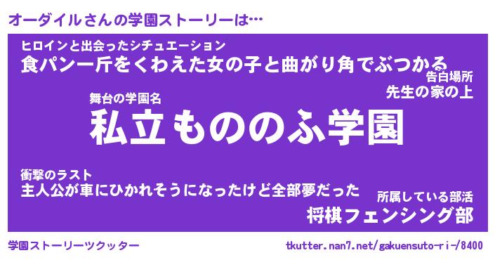| 男性向けラノベタイトル風あだ名 | 『オーダイルの憂鬱』 |