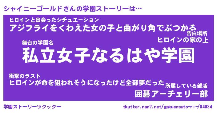 | 男性向けラノベタイトル風あだ名 | 『シャイニーゴールドアートオンライン』 |
