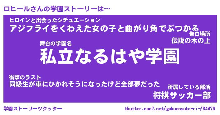 | ヒーロー風カッコイイあだ名 | 『スーパーロヒール』『天弓騎士ロヒ』 |