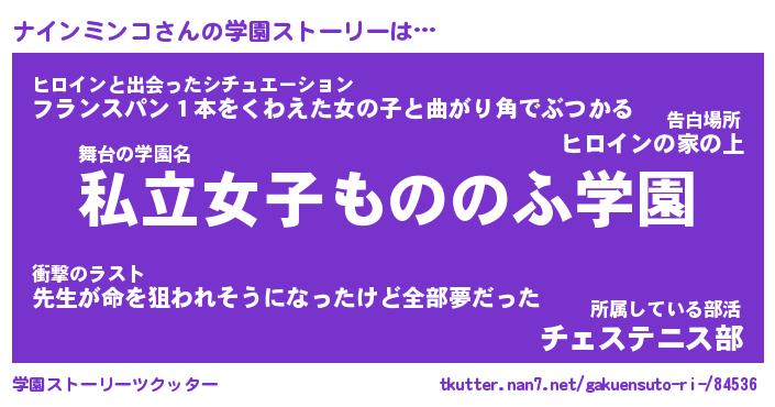 | ヒーロー風カッコイイあだ名 | 『スーパーナインミンコ』『幻影騎士ナイ』 |