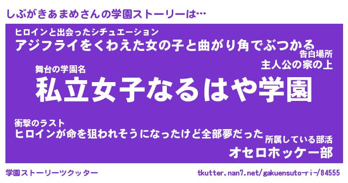 | 男性向けラノベタイトル風あだ名 | 『シブガキアマメアートオンライン』 |