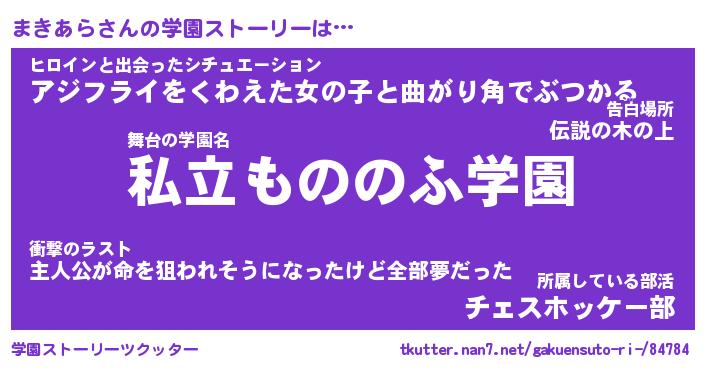 | 男性向けラノベタイトル風あだ名 | 『まきあらの憂鬱』 |