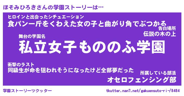 | 伝説のあだ名 | 『封印されし竜騎士ほそみひろき』 |