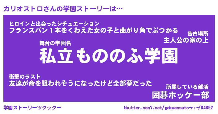 | 女子向けラノベタイトル風あだ名 | 『(仮)カリオストロのやんごとなき事情』 |