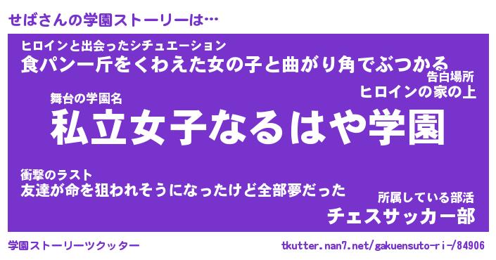 | 女子向けラノベタイトル風あだ名 | 『せば姫と円卓の騎士』『死神せばの再婚』 |