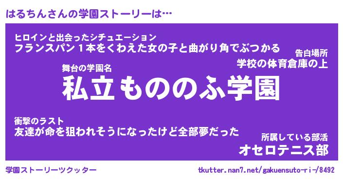 | 男性向けラノベタイトル風あだ名 | 『はるちんの憂鬱』 |