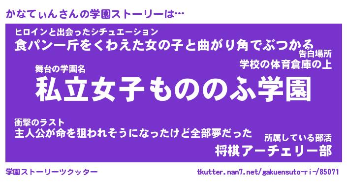 | ファンタジー風あだ名 | 『カナフェル』『エターナルカナティンー』 |