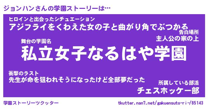 | 男性向けラノベタイトル風あだ名 | 『ジョンハンアートオンライン』 |