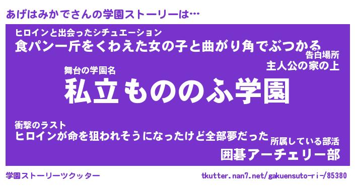 | 告白場所 先生の家の上 …「ふぃぎゅこ」 | 2月17日 06:24 |