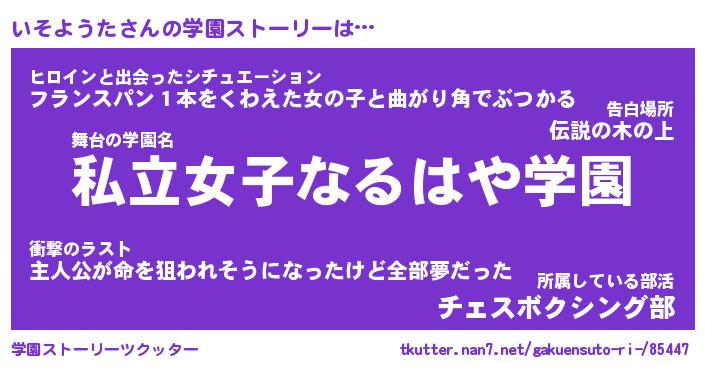 | 男性向けラノベタイトル風あだ名 | 『イソヨウタアートオンライン』 |