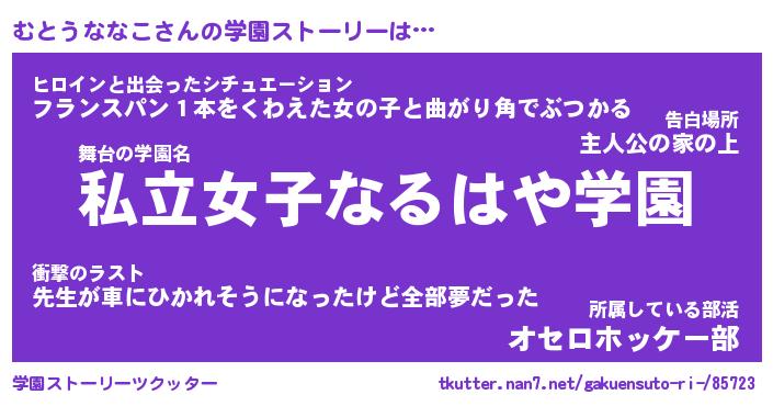 | 意味不明あだ名 | 『ペロリンむとうななこ』 |