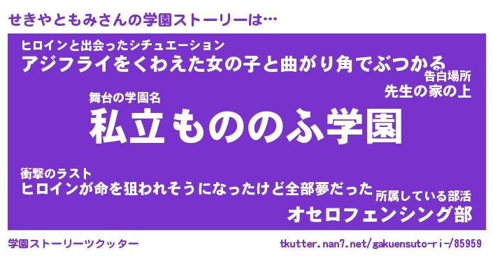 | 男性向けラノベタイトル風あだ名 | 『せきやともみの憂鬱』 |