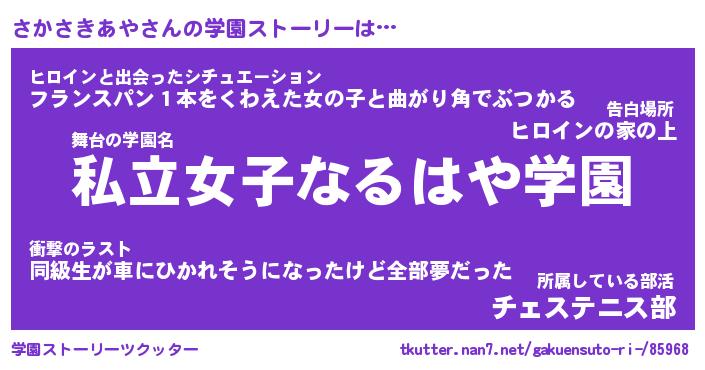 | 伝説のあだ名 | 『不死鳥のスナイパーさかさきあや』 |