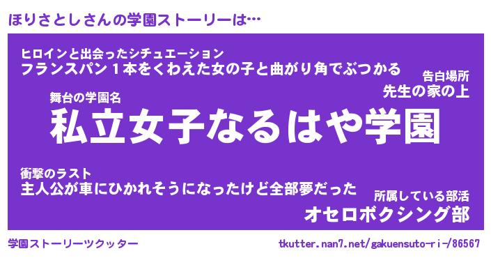 | 女子向けラノベタイトル風あだ名 | 『誰かこのほりさとしを説明してください! ~契約から始まるウェディング~』 |