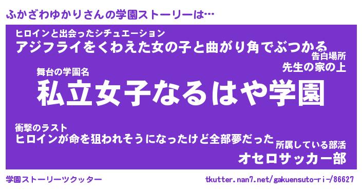 | 女子向けラノベタイトル風あだ名 | 『誰かこのふかざわゆかりを説明してください! ~契約から始まるウェディング~』 |