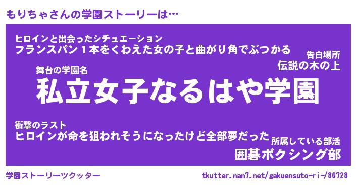 | 女子向けラノベタイトル風あだ名 | 『もりちゃ姫と円卓の騎士』 |
