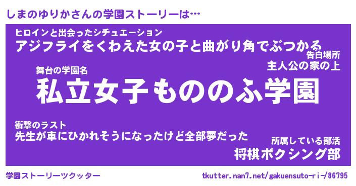 | 女子向けラノベタイトル風あだ名 | 『しまのゆりか姫と円卓の騎士』 |