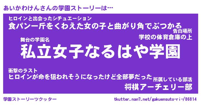 | 伝説のあだ名 | 『封印されしスナイパーあいかわけん』 |