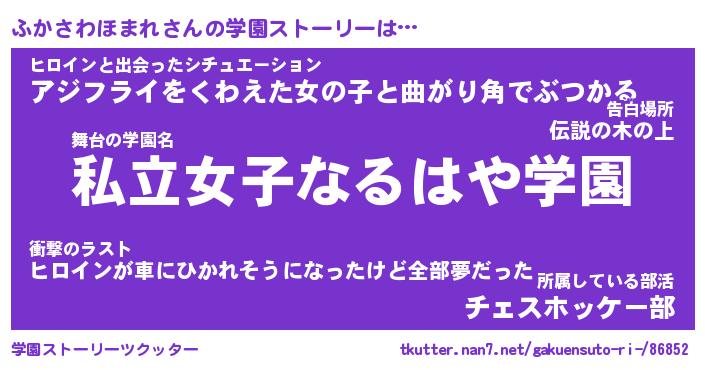 | 伝説のあだ名 | 『封印されしスナイパーふかさわほまれ』 |