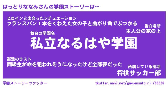 | 胡散臭い通販商品みたいなあだ名 | 『必ず成功する霊験あらたかなお札…その名も「はっとりななみ」』 |