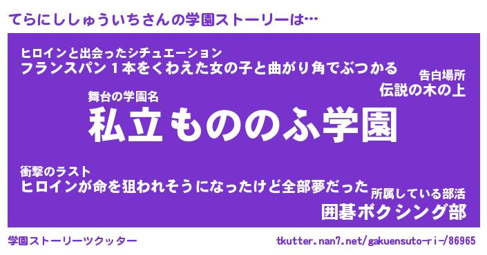 | 女子向けラノベタイトル風あだ名 | 『てらにししゅういち姫と円卓の騎士』 |